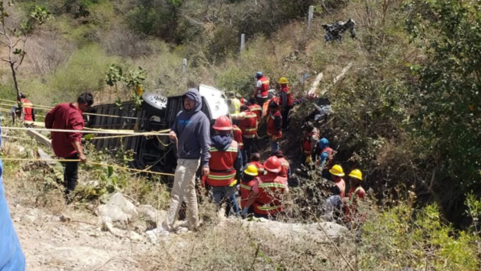 Oaxaca.- Un autobús de pasajeros volcó esta mañana en la autopista Mitla- Tehuantepec, en Oaxaca, dejando como saldo al menos 11 personas sin vida.