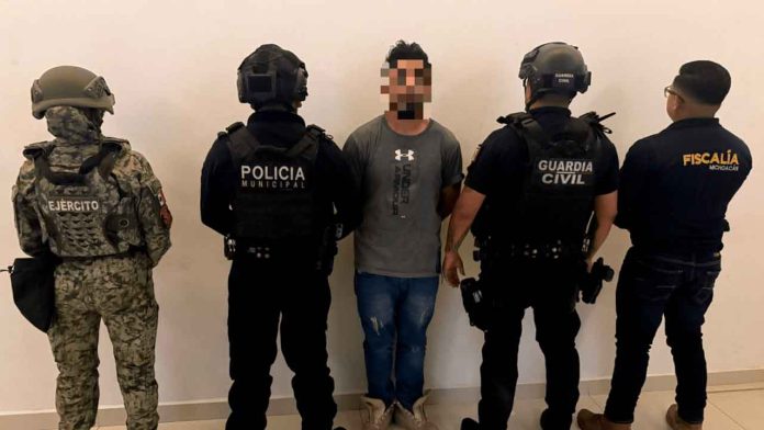Jacona, Michoacán.- Se logró la detención de un sujeto implicado en homicidio calificado y lesiones calificadas, señalado como principal generador de violencia en la demarcación, esto como resultado de un operativo coordinado entre la Secretaría de Seguridad Pública (SSP), Secretaría de la Defensa Nacional (SEDENA), la Fiscalía General del Estado (FGE) y Policía Municipal.