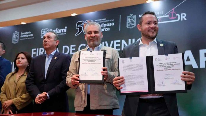 Morelia, Michoacán, 14 de marzo de 2025.- A fin de facilitar el trámite de visas para que adultos mayores puedan reencontrase con sus familias migrantes en Estados Unidos, el gobernador Alfredo Ramírez Bedolla firmó un convenio con presidentes municipales, para que, en coordinación con la Secretaría del Migrante, se faciliten las gestiones ante la embajada norteamericana.