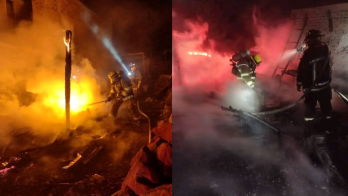 Morelia, Mich.- 15 de marzo del 2025.- Bomberos de la Coordinación de Protección Civil Estatal atendieron un fuerte incendio que consumió un domicilio construido mayormente con madera y láminas de cartón, sin que hubiera personas lesionadas.