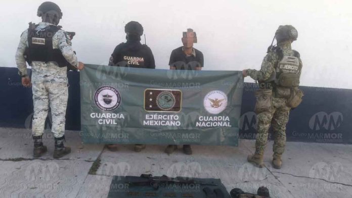 Tras recorrer un camino de terraceria en las inmediaciones de la localidad de Puerta Chica, municipio de Parácuaro, los agentes detuvieron al hombre, a quien le fue asegurado un fusil, además de ocho cargadores y 210 cartuchos calibre 7.62X39 milímetros.