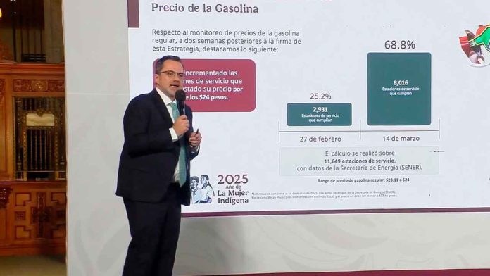 En el marco de “la mañanera del pueblo” el funcionario detalló, ste calculo fue realizado sobre 11 mil 649 gasolineras, con datos de la Secretaría de Energia, por lo que se detectó que el rango de precios para el combustible ronda entre los 23.11 y los 24 pesos.