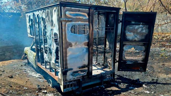 Apatzingán, Mich.- 18 de marzo de 2025.- Un grupo de delincuentes por la fuerza despojó a los ocupantes de una camioneta de reparto de su unidad, les robaron sus pertenencias y huyeron para posteriormente incendiar el automotor en la periferia de Apatzingán.