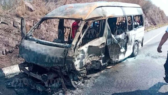 La Unión, Guerrero.- 19 de marzo de 2025.- La tarde de este miércoles, una camioneta tipo turismo ardió en llamas luego de protagonizar un choque contra un camión militar, sobre la autopista Siglo XXI, sin que por fortuna hubiera víctimas que lamentar.