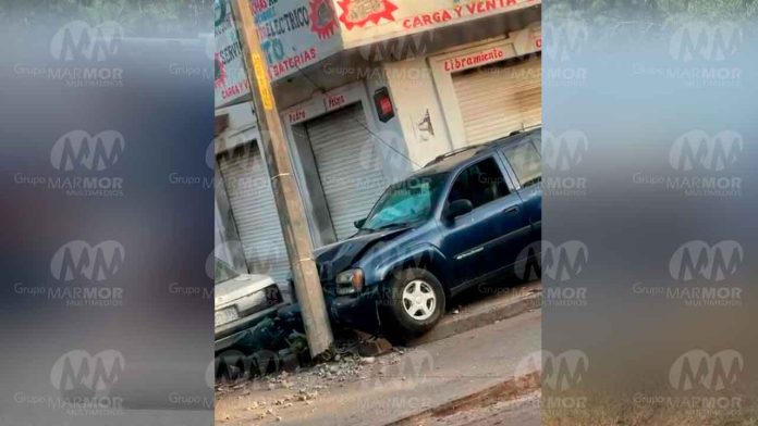La colisión ocurrió sobre la lateral del Libramiento Oriente, esquina con la calle Pedro Palma, donde participaron un vehículo Volkswagen Tiguan y una camioneta Chevrolet Trail Blazer, de color azul, ésta última unidad salió proyectada contra un poste y estuvo a punto de derribarlo.