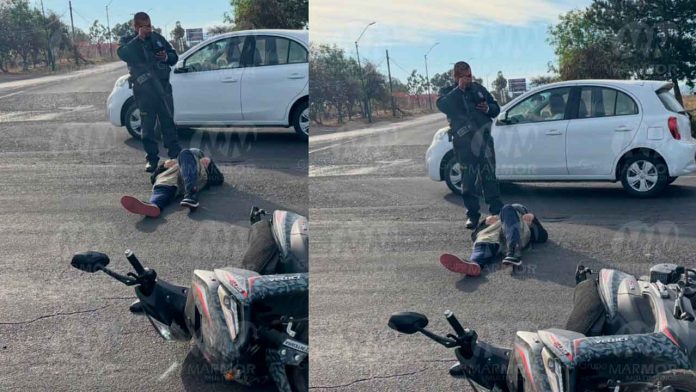 En una fotografía que llegó a la redacción de Grupo Marmor, se puede observar que un masculino se encuentra tirado sobre el pavimento, mientras una motocicleta a su lado esta también en el suelo.