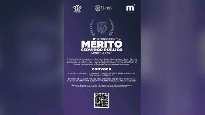 Morelia Michoacán, a 20 de marzo de 2025.- El Ayuntamiento moreliano, encabezado por el Alcalde, Alfonso Martínez Alcázar, busca galardonar a las personas que se desempeñan de forma ejemplar como servidoras públicas, adscritas a dependencias y entidades municipales, y lanza la Convocatoria para otorgar el Reconocimiento al Mérito como Servidor Público Municipal 2025.