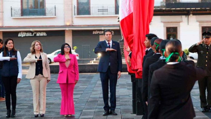 Morelia, Michoacán, a 21 de marzo de 2025.- El Ayuntamiento de Morelia que encabeza el Alcalde, Alfonso Martínez Alcázar, encabezó el acto conmemorativo por el Aniversario 219 del natalicio de Benito Juárez García, mediante una ceremonia cívica que se llevó a cabo en el Centro de la ciudad.