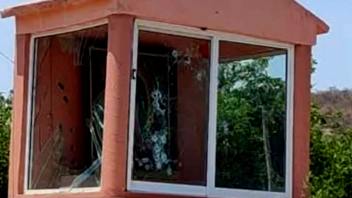 +En redes sociales fueron difundías imágenes de los daños generados por “dronazos” y balazos en el templo y un nicho de la Virgen de Guadalupe