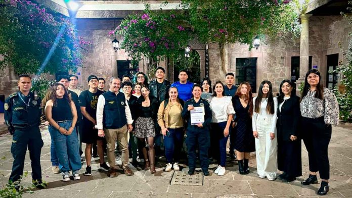 Morelia, Michoacán.- El Comisionado Municipal de Seguridad Ciudadana, Alejandro G. Cussi, en conjunto con oficiales de la Unidad de Policía Orientada a la Solución de Problemas (POP), llevaron a cabo una visita a la Universidad Nova Spania. Durante esta jornada, se sostuvieron charlas con estudiantes de las licenciaturas en Ciencia Política y Derecho, enfocadas en estrategias de prevención del delito y seguridad personal.