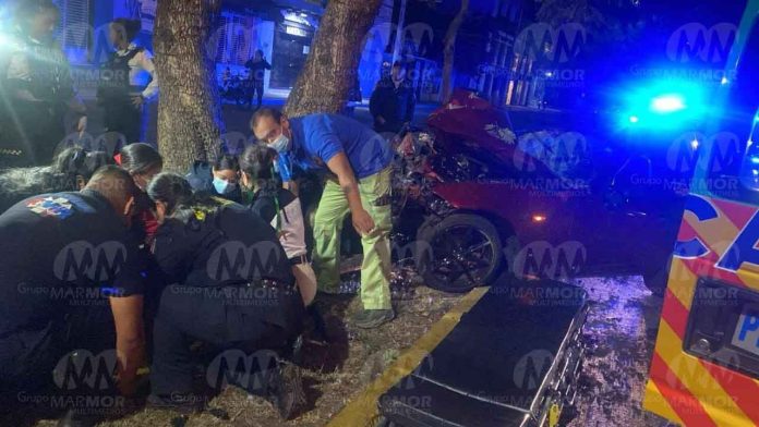 Morelia, Mich.- Domingo 30 de marzo de 2025.- Un automovilista resultó gravemente lesionado tras estrellarse contra un árbol ubicado en uno de los camellones de la avenida Camelinas (libramiento sur), en Morelia. Paramédicos de Atención Médica y Rescate (AMR) atendieron la emergencia.
