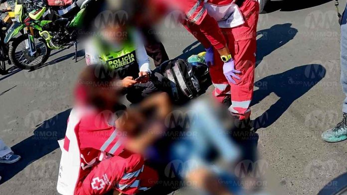 Morelia, Mich.- Lunes 31 de marzo de 2025.- Un joven motociclista resultó lesionado tras ser impactado por un automóvil sobre Calzada Ventura Puente, frente a la escuela de Enfermería, indicaron fuentes allegadas al tema.