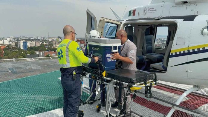 Morelia, Michoacán, de 31 de marzo del 2025.- Este lunes, a través de una de sus aeronaves, la Secretaría de Seguridad Pública (SSP) trasladó dos riñones y un hígado hacia dos centros médicos de la Ciudad de México para ser trasplantados.