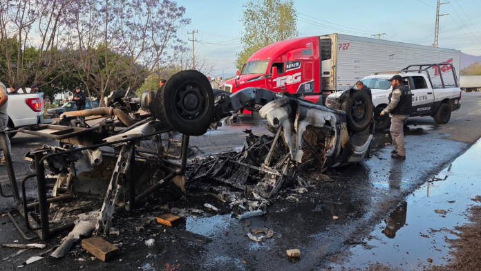 Enseguida un grupo sujetos se apoderó de una patrulla Ford marcada con el número económico 23-03103 y la volcaron para después prenderle fuego, lo que desató un enfrentamiento entre los civiles y los uniformados.
