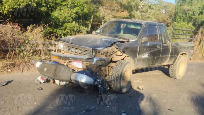 Los Reyes, Mich.- 05 de abril de 2025.- La tarde de este sábado un hombre perdió la vida al derrapar la motocicleta que manejaba y estrellarse contra una camioneta en la carretera que va de Imbáracuaro a Zacán, en esta demarcación de Los Reyes.