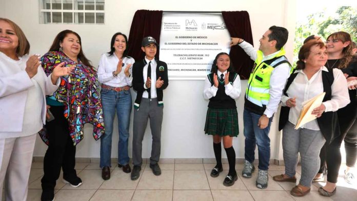Zitácuaro, Michoacán.- Michoacán le apuesta como nunca antes a la educación y al fortalecimiento de la infraestructura educativa, destacó la titular del Instituto de Educación Media Superior y Superior del Estado de Michoacán (Iemsysem), Mariana Sosa Olmeda, al inaugurar, junto con el secretario de Comunicaciones y Obras Públicas, Rogelio Zarazúa Sánchez, nuevas obras en el Telebachillerato 193 de Zitácuaro.