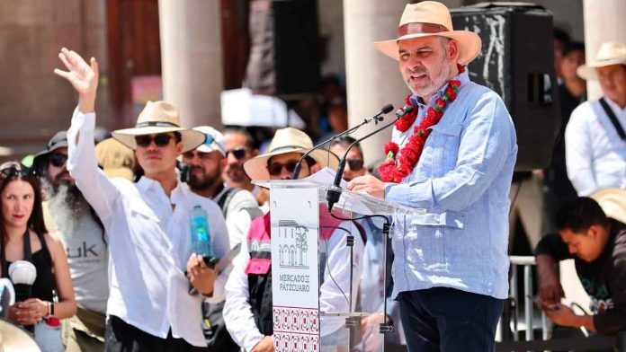 Pátzcuaro, Michoacán, 9 de abril de 2025.- El gobernador Alfredo Ramírez Bedolla inauguró el nuevo corazón comercial del Pueblo Mágico de Pátzcuaro, un mercado popular de 20 mil metros cuadrados de construcción que lo convierte en el más grande de Michoacán y referente económico, turístico y cultural de la región.