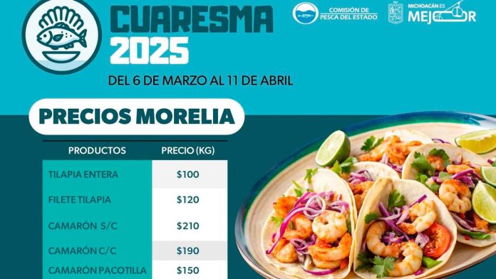 Morelia, Michoacán, 10 de abril de 2025.- La Comisión de Pesca del Estado de Michoacán informa que este jueves 11 y viernes 12 de abril concluirán los puntos de venta de pescados y mariscos instalados durante la temporada de Cuaresma 2025, los cuales han acercado productos frescos, de calidad y a precios accesibles a la población.
