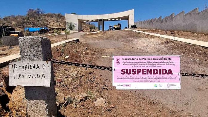 Morelia, Michoacán, 12 de abril de 2025.- La Procuraduría de Protección al Ambiente (Proam) llevó a cabo la suspensión de obras de un fraccionamiento ubicado al norte de la ciudad de Morelia, al no presentar sus autorizaciones en materia de impacto ambiental.