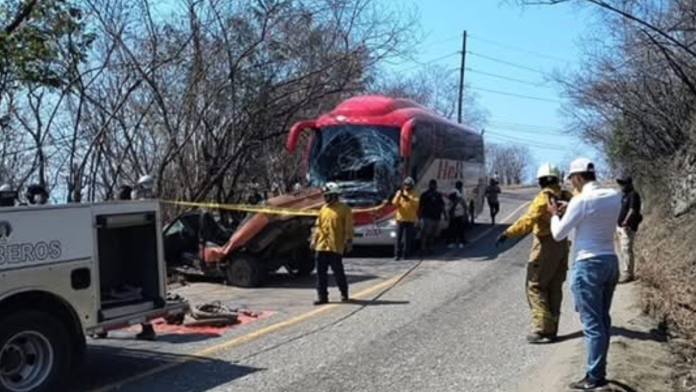 El percance vial tuvo lugar en las inmediaciones del mirador de La Virgencita, dentro del municipio de Aquila. Los vehículos involucrados corresponden a un autobús de pasajeros de la Línea Nuevo Horizonte y una camioneta pickup de modelo atrasado.