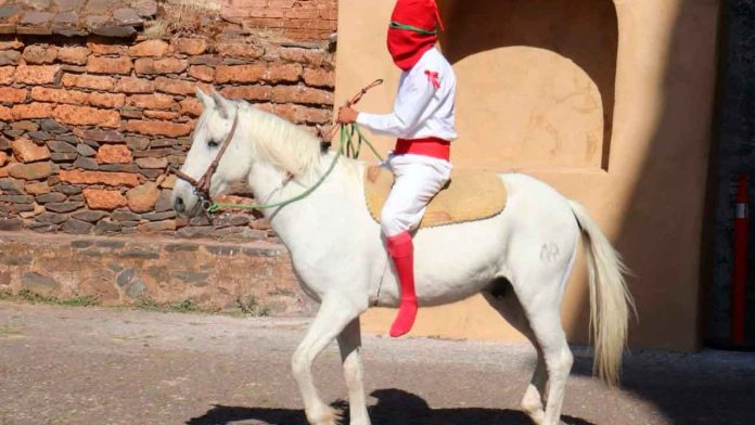Tzintzuntzan, Michoacán, 17 de abril de 2025.- Los Espías o legionarios de Tzintzuntzan es una representación que simula a los soldados romanos buscando a Jesús de Nazaret por las calles de este Pueblo Mágico. Jóvenes a caballo participan el Miércoles y Jueves Santo en esta recreación de la Semana Santa en el antiguo imperio purépecha.