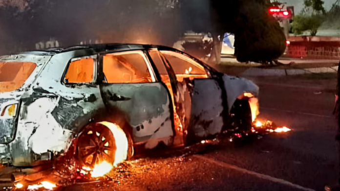 Primero, una camioneta tipo Suv ardía en llamas sobre la carretera Tarímbaro-Zinapécuaro, justo a la altura de colonia Vistabella I, a escasos metros de la jardinera donde está ubicado el letrero de “Álvaro Obregón”.Unos habitantes reportaron el hecho, minutos después arribaron patrulleros y los bomberos, éstos últimos sofocaron la lumbre y al interior descubrieron un cuerpo carbonizado, el cual no está identificado.