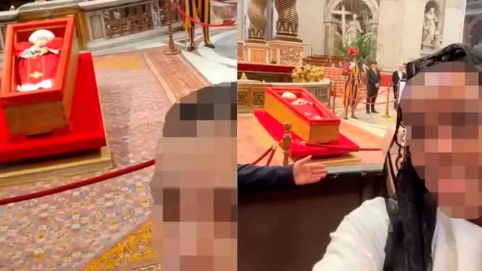 Ciudad del Vaticano, 24 de abril de 2025 – La solemnidad del velatorio del Papa Francisco en la Basílica de San Pedro se ha visto empañada por la conducta de numerosos visitantes que han sido captados tomándose selfies y grabando videos frente al féretro abierto del pontífice, algunos incluso sonriendo.