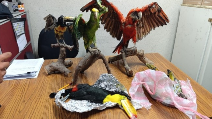 También se encontraron dos aves muertas en refrigeración: un tucán pico de canoa, Ramphastos sulfuratus, listado en la NOM-059-SEMARNAT-2010 y en el Apéndice II de la CITES, una guacamaya verde, Ara militaris, listada en la NOM-059-SEMARNAT-2010 y en el Apéndice I de la CITES, y una cabeza en taxidermia de venado cola blanca, Odocoileus virginianus.