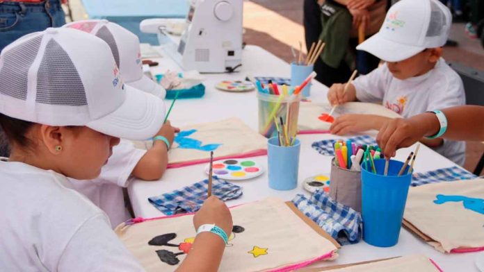 Morelia, Michoacán; 27 de abril de 2025. – Cientos de niñas y niños llenaron de alegría el Complejo Deportivo Bicentenario durante la Feria de la Niñez “Juguemos por la Paz”, evento encabezado por el DIF Morelia, presidido por Paola Delgadillo Hernández, y el Gobierno Municipal, a cargo del presidente Alfonso Martínez Alcázar.