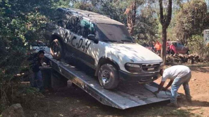 Pátzcuaro, Mich.- Lunes 28 de abril de 2025.- Una camioneta fue encontrada abandonada en un predio de la población de Santa Juana II, ubicada en el municipio de Pátzcuaro. Según autoridades policiales, al vehículo se le apreciaron en ambos costados las siglas “N.C.D.N”, las cuales supuestamente pertenecen a un grupo criminal.