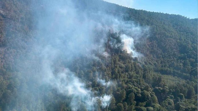 De manera simultánea, brigadas terrestres de la Comisión Forestal de Michoacán (Cofom), la Comisión Nacional Forestal (Conafor) y la Comisión Nacional de Áreas Naturales Protegidas trabajan arduamente en el terreno.