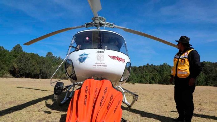 Además gracias a la intervención de un helicóptero de la Dirección de Servicios Aéreos de la Secretaría de Seguridad Pública de Michoacán, acondicionado con helibalde, se realizan descargas constantes para sofocar las llamas desde el aire.