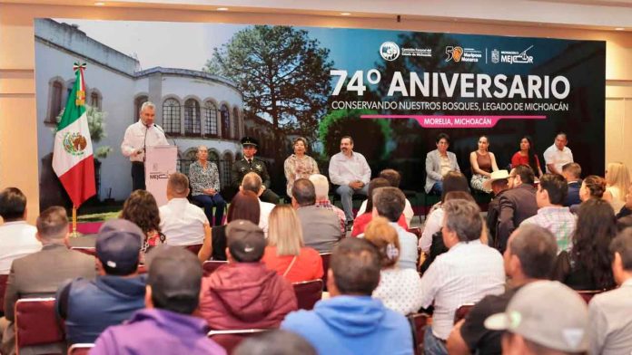 Morelia, Michoacán.- En el marco del 74 Aniversario de la Comisión Forestal de Michoacán (Cofom), el gobernador Alfredo Ramírez refrendó su compromiso con el cuidado del medio ambiente y destacó la importancia de esta institución dedicada a la preservación de los bosques del estado y de los recursos naturales.