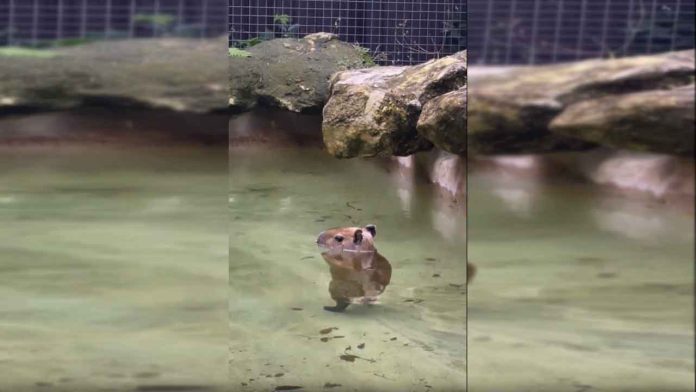 Un tierno capibara se robó el corazón de las redes al ser captado caminando tranquilamente por el agua. El video, que ya suma miles de reproducciones, muestra al pequeño roedor desplazándose con calma y estilo, como si estuviera desfilando por una pasarela acuática. Los capibaras, conocidos por su personalidad tranquila y sociable, son los roedores más grandes del mundo y suelen vivir cerca de ríos y pantanos en Sudamérica. Su andar relajado ha convertido a esta especie en un símbolo de paz y buenas vibras en internet.