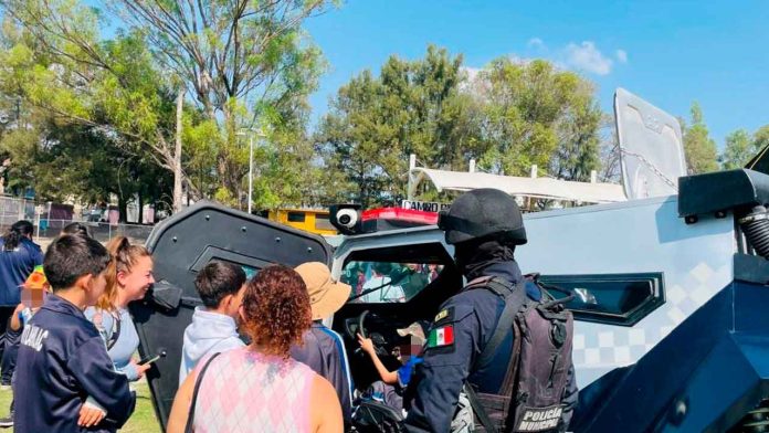 En el campo deportivo “5 de Febrero” se congregaron niñas, niños y adolescentes para conocer a las y los agentes de la corporación policial, así como a sus agrupamientos Táctico Operativo Delta, de Seguridad Vial, Equinos y Caninos. Con demostraciones de sus diversas actividades, la comunidad estudiantil mostró interés en el trabajo que realizan los policías estatales para prevenir el delito.