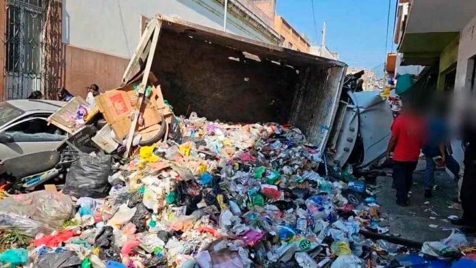 - El percance dejó 3 heridos, entre ellos un adolescente, el chofer del vehículo recolector y un comerciante.