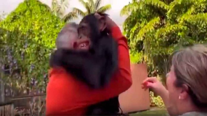 Un tierno y conmovedor momento conmovió a miles de personas en redes sociales, luego de que un chimpancé, que mostraba signos de depresión tras años viviendo en un zoológico, fuera llevado a reencontrarse con la familia humana que lo crió en sus primeros años de vida.
