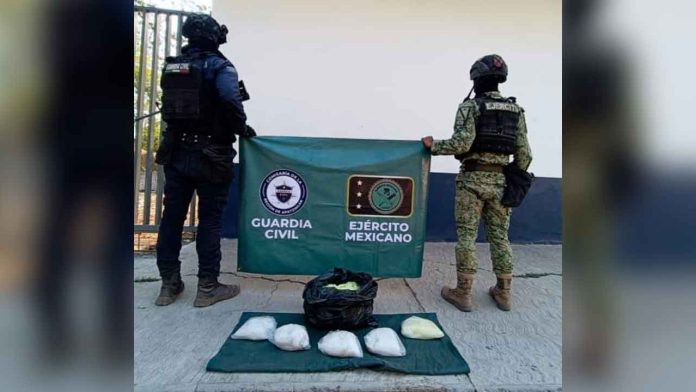 El aseguramiento de la droga se realizó en la localidad de Los Pozos, donde los agentes del Ejército Mexicano y la Guardia Civil patrullaban en una brecha de terracería, donde ubicaron las dos camionetas, una de la marca Chevrolet y otra Mitsubishi en las cuales al interior fueron encontradas diversas bolsas plásticas con el citado enervante.
