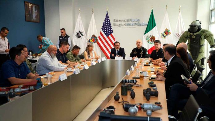 Morelia, Michoacán, 22 de mayo del 2025.- Con la premisa de continuar con el intercambio de conocimientos, mantener capacitaciones constantes y combatir la producción de artefactos explosivos improvisados por parte de la delincuencia organizada, el titular de la Secretaría de Seguridad Pública (SSP), Juan Carlos Oseguera Cortés, sostuvo una mesa de trabajo con autoridades del Gobierno de Estados Unidos.