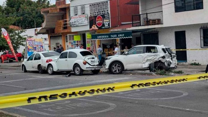 En su alocada carrea el auto se proyectó contra una camioneta Toyota de color blanco, con matrícula PMW-363-D, contra un Volkswagen sedán tipo “Vocho” y contra otro Volkswagen Jetta clásico de color blanco, los cuales estaban estacionados, para seguir la marcha varios metros y terminar atravesado sobre la vialidad.