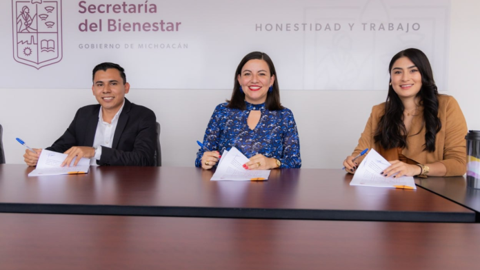 La titular de la Sedebi, Andrea Serna Hernández y Erik Gómez Soria, representante legal del laboratorio, así como Kenia Nataly Jaimes Huipio, directora de Atención a Grupos Prioritarios, acordaron que este beneficio será de manera directa a las y los beneficiarios de los programas Mujeres con Cáncer de Mama y/o Cervicouterino Invasor y Familias Cuidadoras de Niñas y Niños con Cáncer.