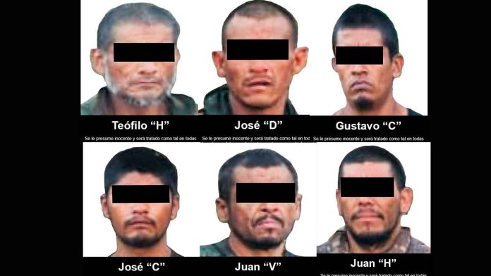 La captura se realizó durante un recorrido de vigilancia en una brecha de terracería. Ahí, los agentes interceptaron a Juan “H”, Juan “V”, Gustavo “C”, José “D”, José “C” y Teófilo “H”, quienes presuntamente formaban parte de una célula armada del CJNG.