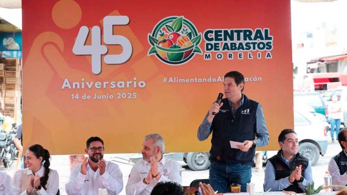 Morelia, Michoacán, a 14 de junio de 2025.- La Central de Abastos de Morelia, punto clave para el comercio en la capital michoacana, celebró su 45 aniversario con un evento en el que el Presidente Municipal de Morelia, Alfonso Martínez Alcázar, refrendó su compromiso con el desarrollo económico de esta zona importante para la capital.