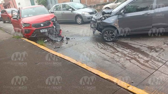 Morelia, Mich.- 14 de junio de 2025.- La mañana de este sábado dos autos particulares protagonizaron un choque de frente en la colonia Vista Bella, en la zona sur de la ciudad de Morelia.