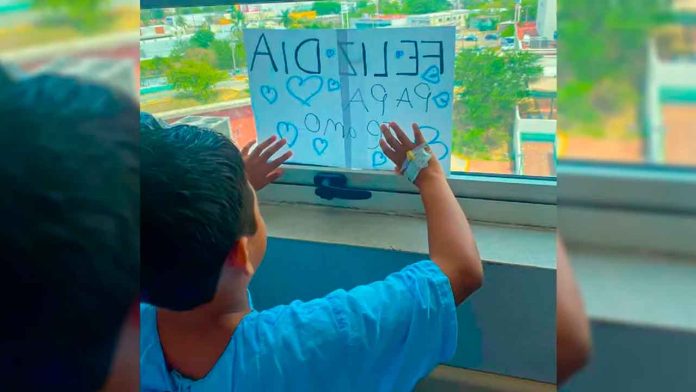 Internado por motivos de salud no especificados, el pequeño encontró la forma de estar cerca de su papá en este día tan especial. Con plumones y cartulina, escribió un mensaje lleno de amor y esperanza, que conmovió tanto al personal como a quienes vieron su foto difundida por la página Tampico-Madero MX.