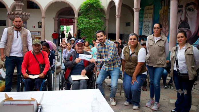 El presidente municipal de Yurécuaro, Moisés Navarro Arellano, entregó 37 tarjetas del Banco del Bienestar a habitantes con discapacidad permanente.