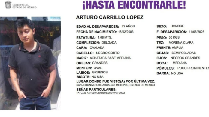 La familia del joven reportó su desaparición y sospechan que Arturo pudo ser engañado y que se encuentra privado de la libertad por un grupo de la delincuencia organizada.