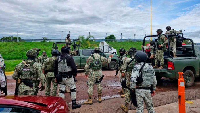 Maravatío, Mich.- Lunes 30 de junio de 2025.- Cinco policías municipales de Maravatío, presuntamente involucrados en el delito de desaparición forzada, en agravio de tres personas, fueron legalmente aprehendidos durante un operativo efectuado por elementos de la Fiscalía General del Estado (FGE) con apoyo de militares y Guardia Nacional (GN).