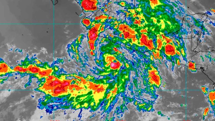 Sus bandas nubosas mantendrán, en las próximas horas, lluvias torrenciales en la costa de Guerrero, el sur y la franja costera de Michoacán, e intensas en Colima y regiones de Jalisco y Oaxaca.