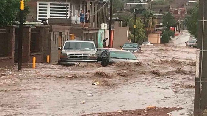 Un impactante video grabado desde el interior de una tienda Oxxo en Chihuahua muestra cómo una inundación pluvial de gran intensidad arrastra violentamente varios vehículos estacionados. La corriente de agua, producto de lluvias extremas, empuja con fuerza un camión, una patrulla y un auto, evidenciando la magnitud del fenómeno. El agua golpea las puertas de vidrio del establecimiento mientras los vehículos son arrastrados calle abajo, sin que nadie pueda detenerlos.